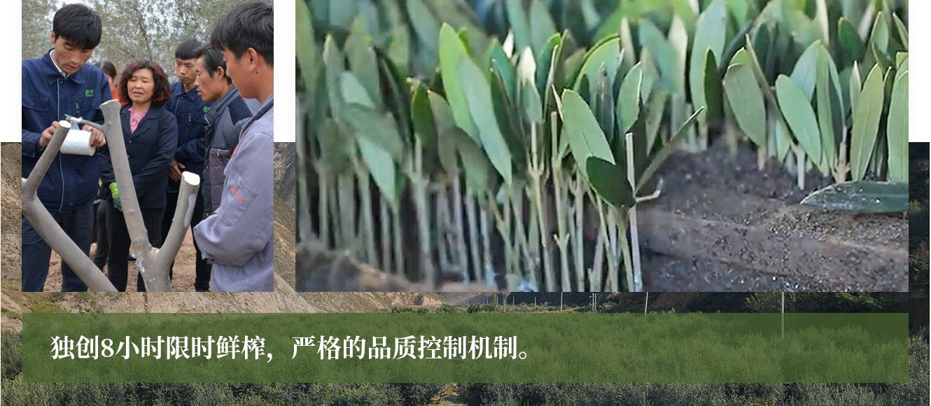 公司從產(chǎn)業(yè)鏈起始端著手,引進良種優(yōu)苗,繁育基地苗圃,優(yōu)化樹種,以優(yōu)質(zhì)的橄欖樹苗為生產(chǎn)特級初榨橄欖油提供基礎(chǔ)保障 ,在以自建萬畝國家標(biāo)準(zhǔn)化油橄欖種植基地、簽訂合作社及農(nóng)戶的基礎(chǔ)上,經(jīng)過多年的試種改良,培育出掛果率出油率高、耐寒耐旱且適宜隴南市栽種的萊星、鄂植8號、阿斯、科拉蒂、皮瓜爾、皮削利等多個優(yōu)良品種。